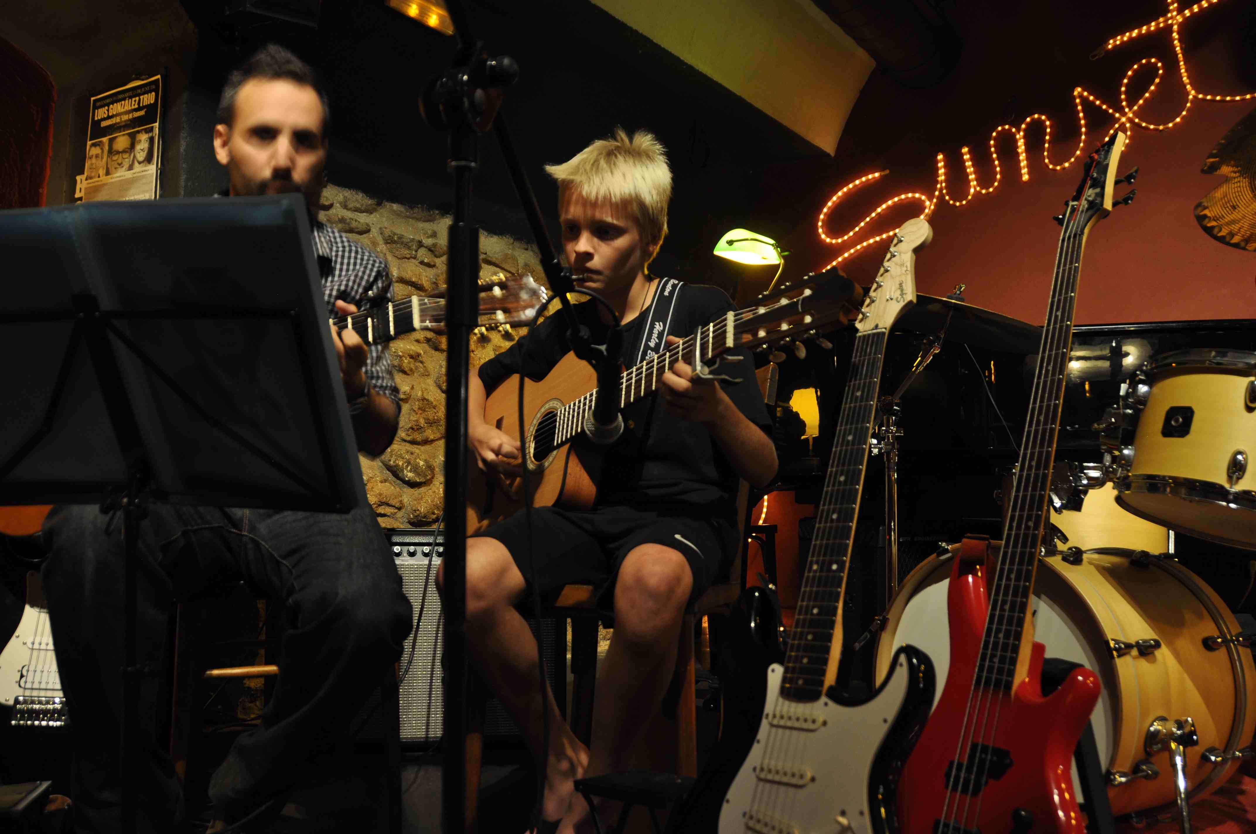Las clases son particulares y en grupo (combo), cada año realizo una muestra en el Sunset (Club de Jazz de Girona) en donde cada alumno expone y comparte el trabajo realizado a lo largo del año, al final podrás ver las fotos de la muestra de este año 😉